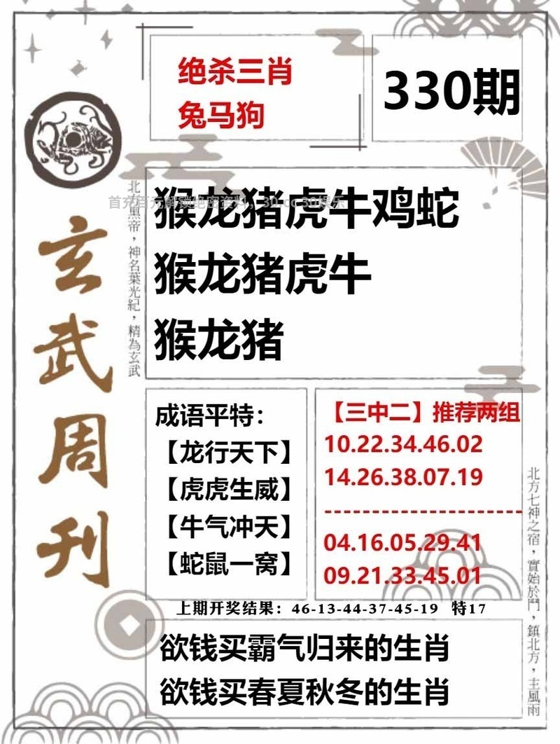 - 334期:澳门王者论坛④肖④码期期中奖✔